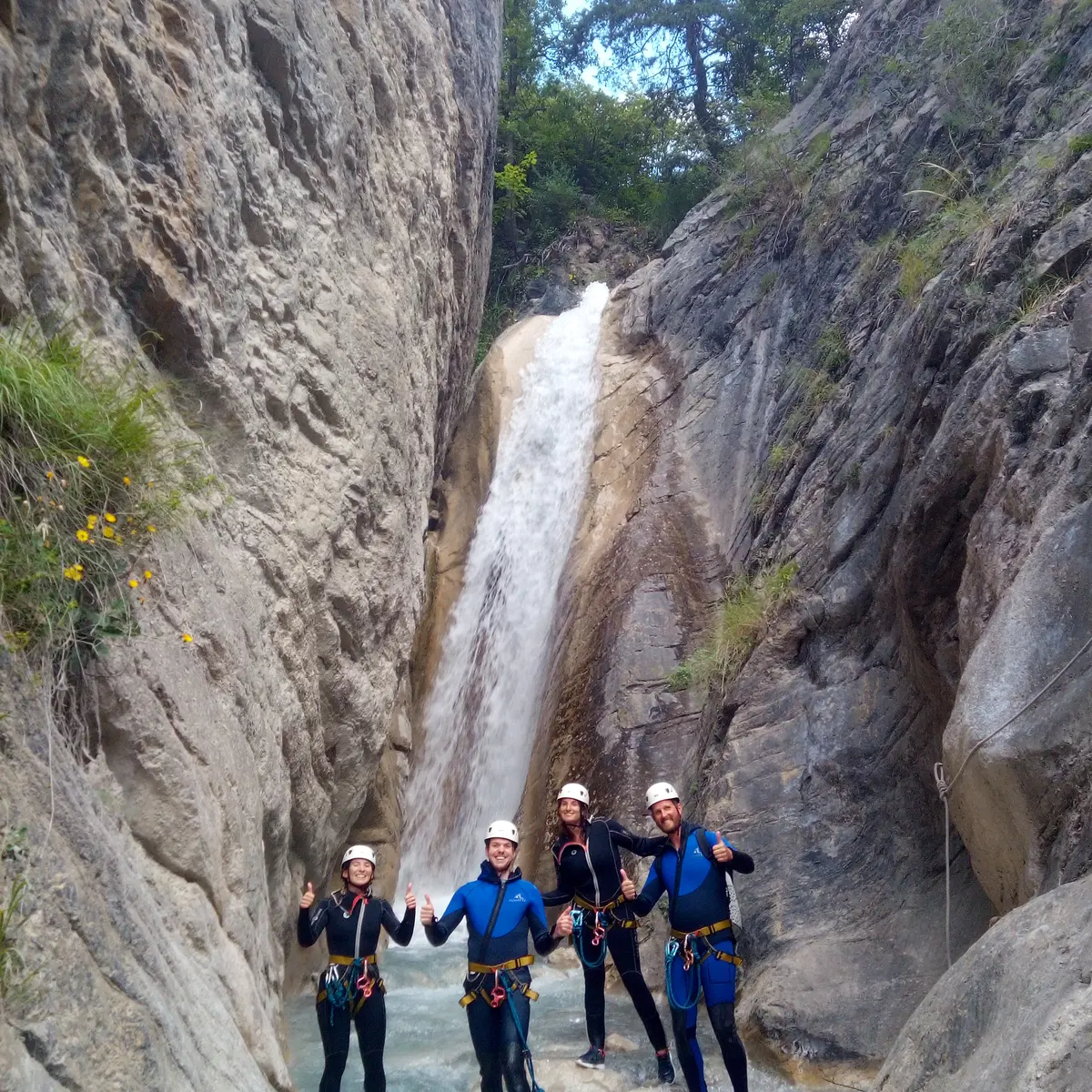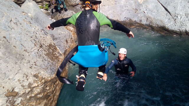 Une journée de canyoning dans la vallée de l'Ubaye: très beaux canyons avec des rappels arrosés dans un cadre magnifique et ensoleillés. Sportif et vertical avec sa grande cascade de 28 mètre à la fin de journée.