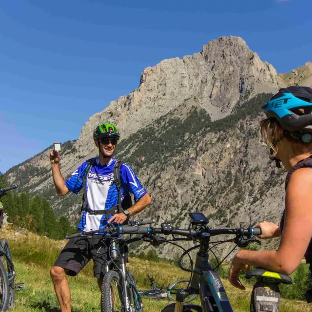 Approche en douceur en VTT électrique sur pistes faciles, petit café, puis randonnée alpine vers le sommet et les lacs glaciaires de Rocca Bianca, une des plus belles vues panoramiques du Queyras ! Un des plus beaux 3000 du Queyras ! Ton accompagnateur en montagne connaît tous les petits coins à ne pas rater et tu auras le temps d’échanger avec lui sur la géologie, les relations Queyras-Piémont, la faune et la flore de haute altitude. Pique-nique au bord d’un lac, tarte aux myrtilles en option avant la descente… Un régal pour les yeux et les papilles !