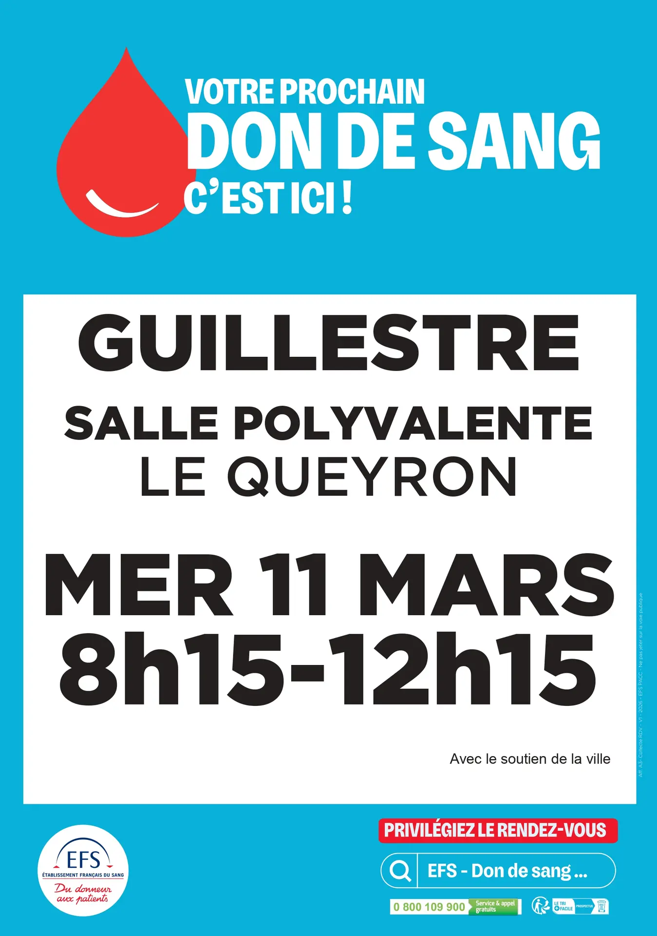 Pour fluidifier le passage, le rendez-vous est conseiller : dondesang.efs.fr
