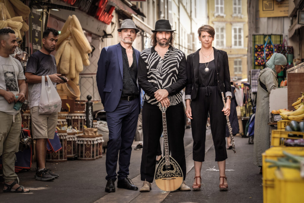 Sur scène s’enchaînent les titres festifs et dansants joués avec fougue par trois musiciens et chanteurs chevronnés accompagnés d’arrangements électro originaux.