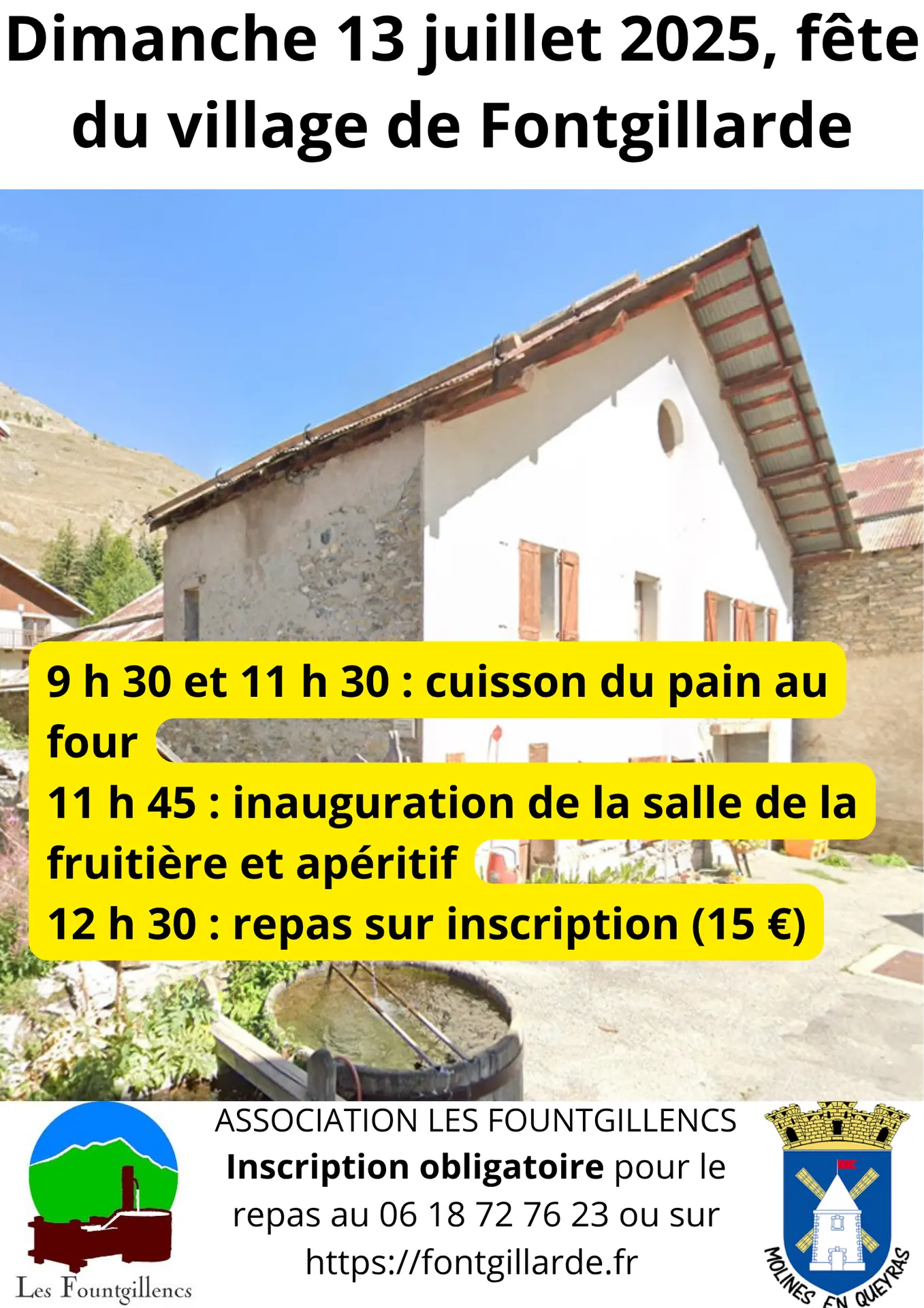 Inscription obligatoire par mail à info@fontgillarde.fr ou par téléphone au 06 18 72 76 23.