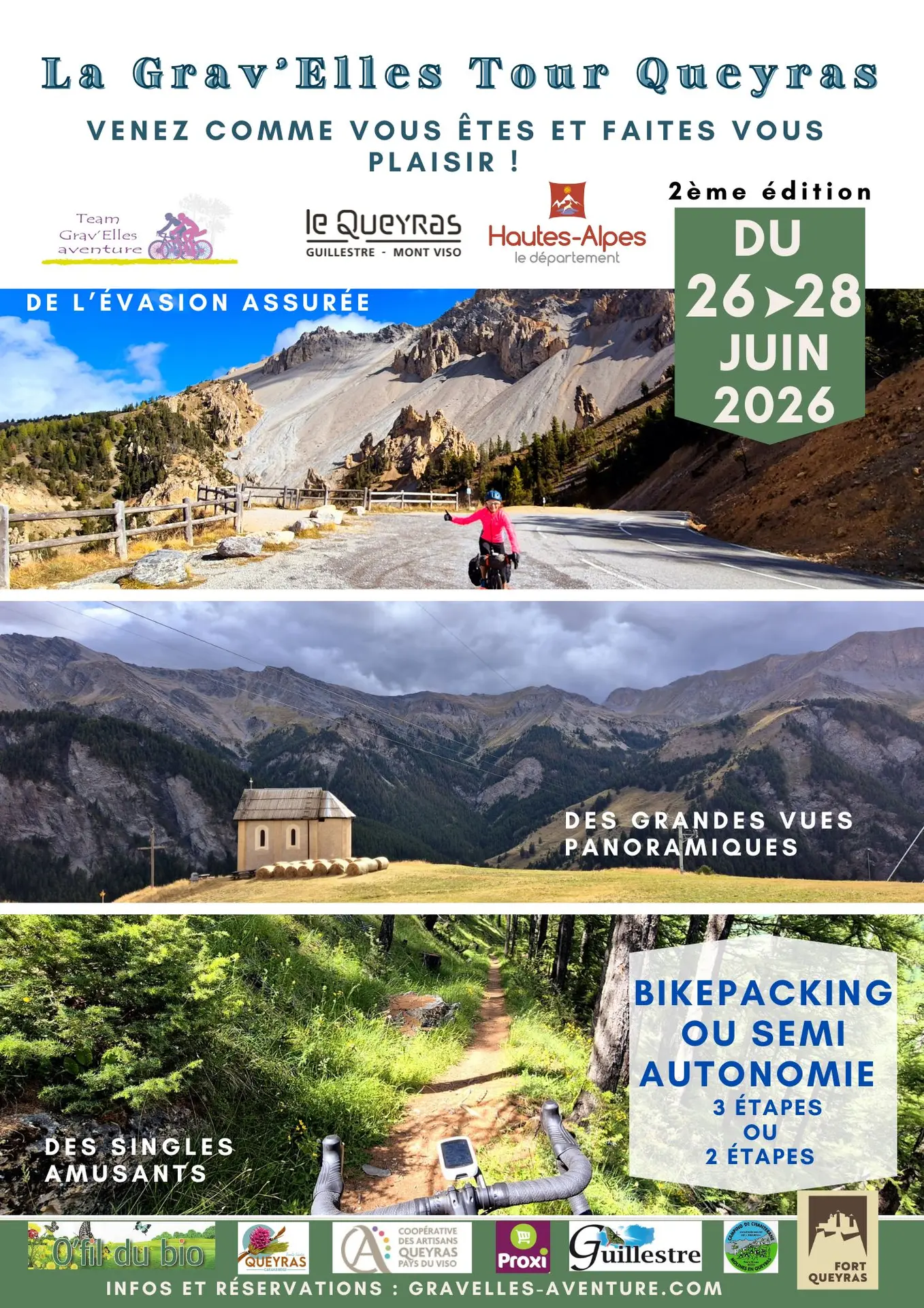 o Grav’Elles Tour Queyras bikepacking : 3 jours (du vendredi au samedi) – 3 étapes :