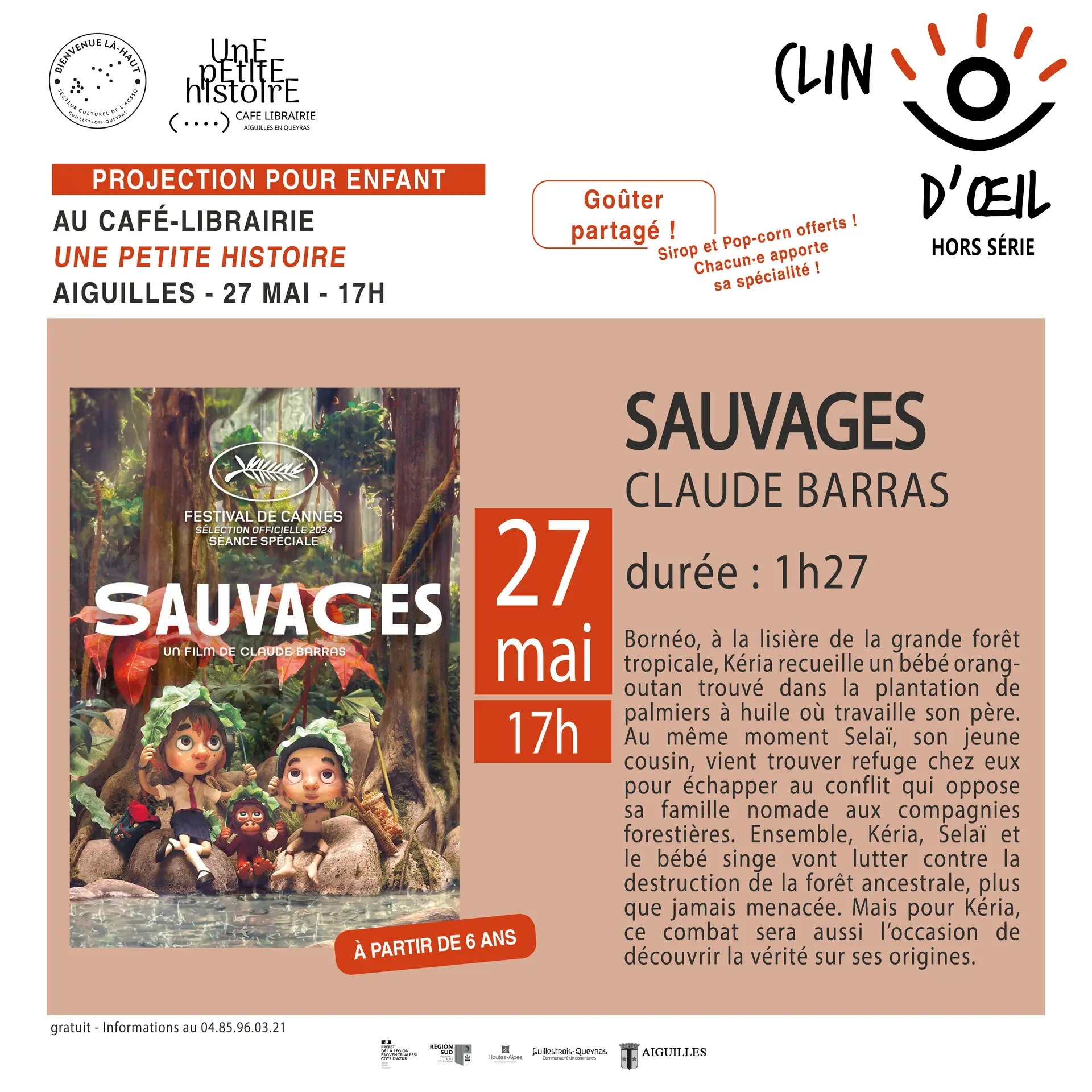 Viens assister à une projection autour d’un goûter avec sirops et popcorn offerts! Pour les enfants à partir de 6 ans
