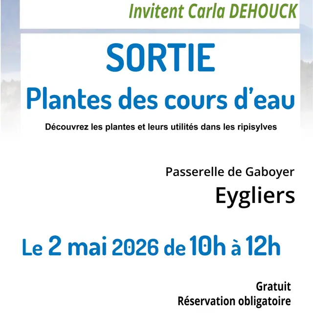 LPO Ecrins-Embrunais et Chlorophylle invitent Carla DEHOUCK pour une sortie dédiée aux plantes des cours d'eau. Cette activité vous permettra de découvrir les différentes espèces végétales présentes dans les ripisylves et d'apprendre sur leurs utilités.