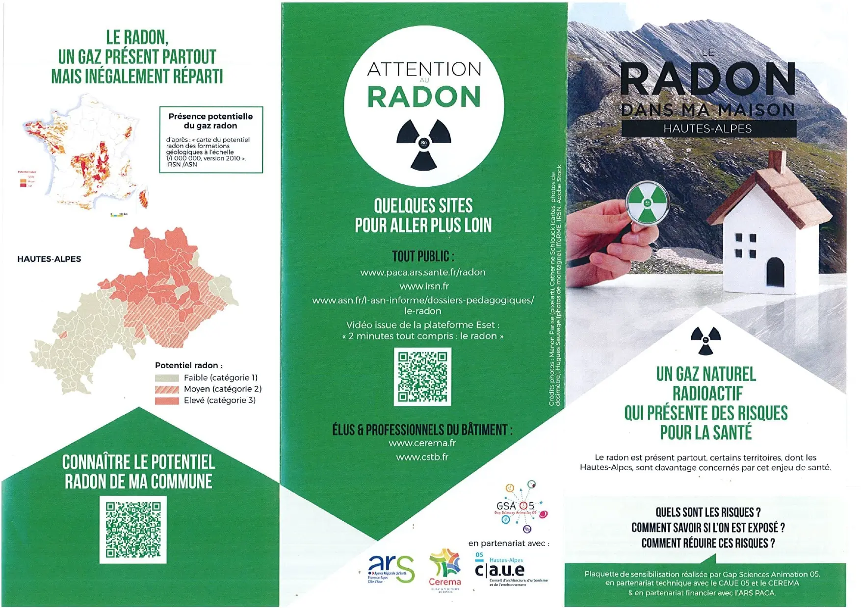 What's radon? A discussion session is planned to help you better understand the risks and how to protect yourself! Distribution of radon dosimeters (free of charge).