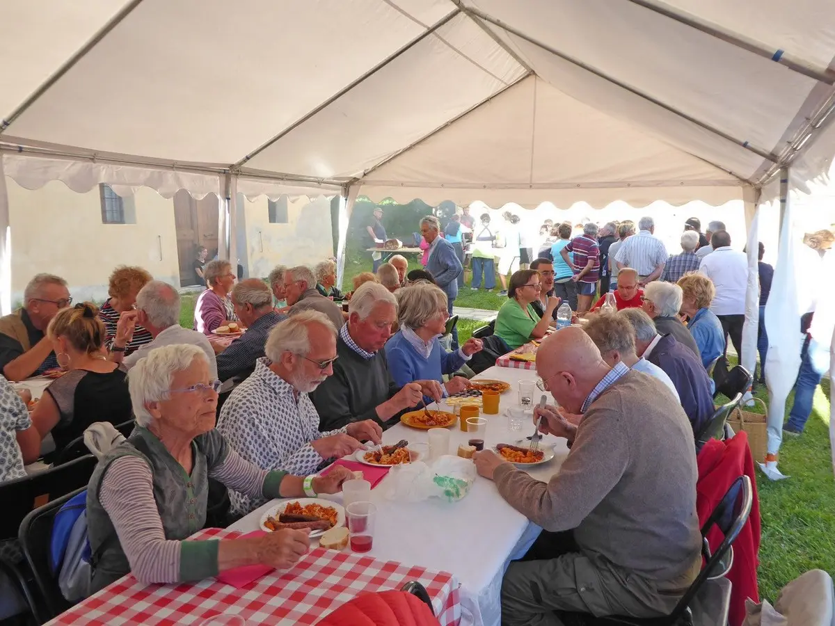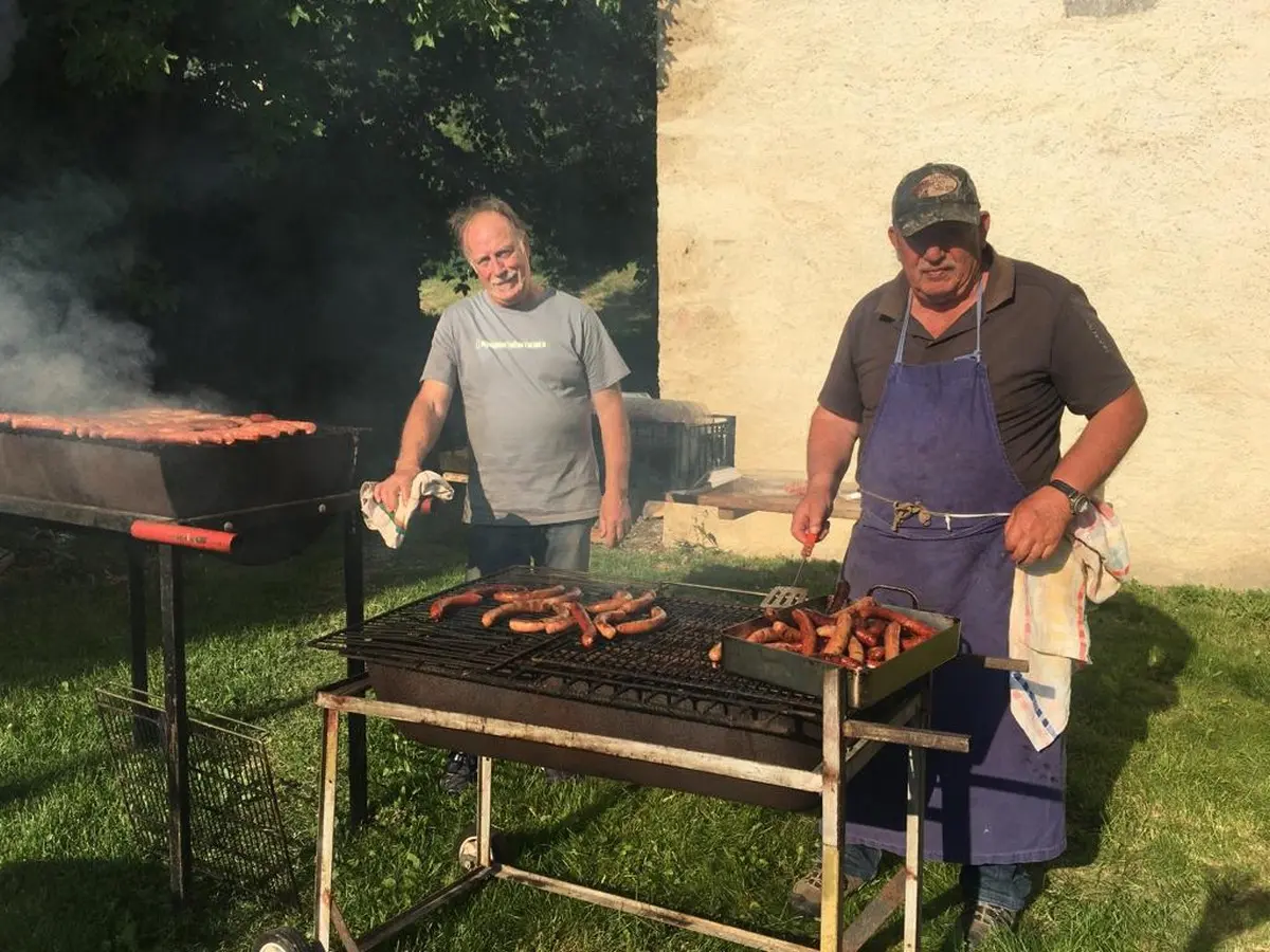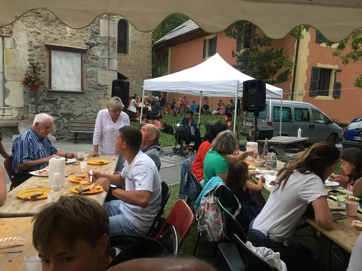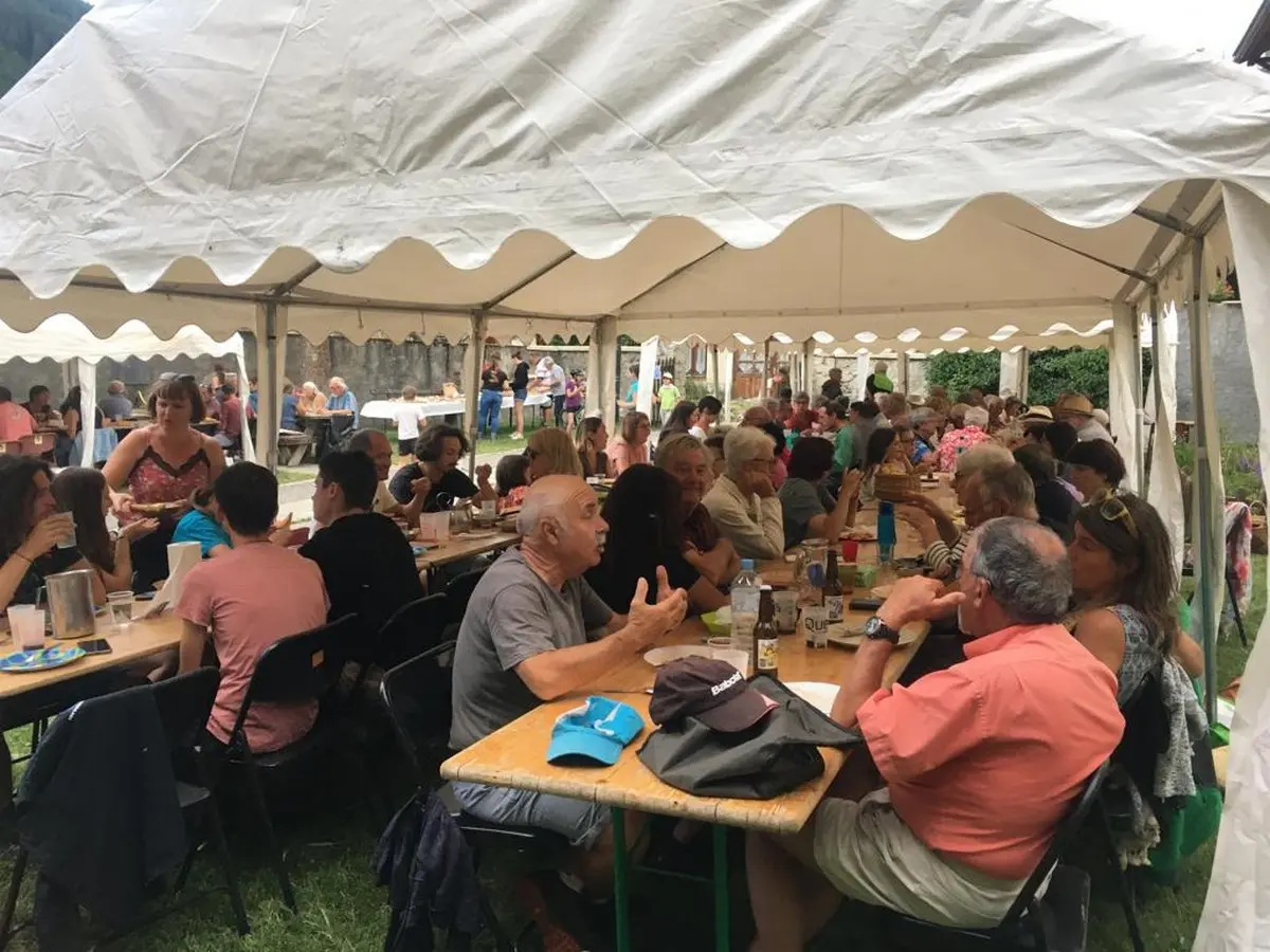 Abriès village festival ! A moment of warm and friendly sharing between locals and tourists where tomato shells and sausages are cooked by Celeste and served with a smile. Come and taste them with your good mood!