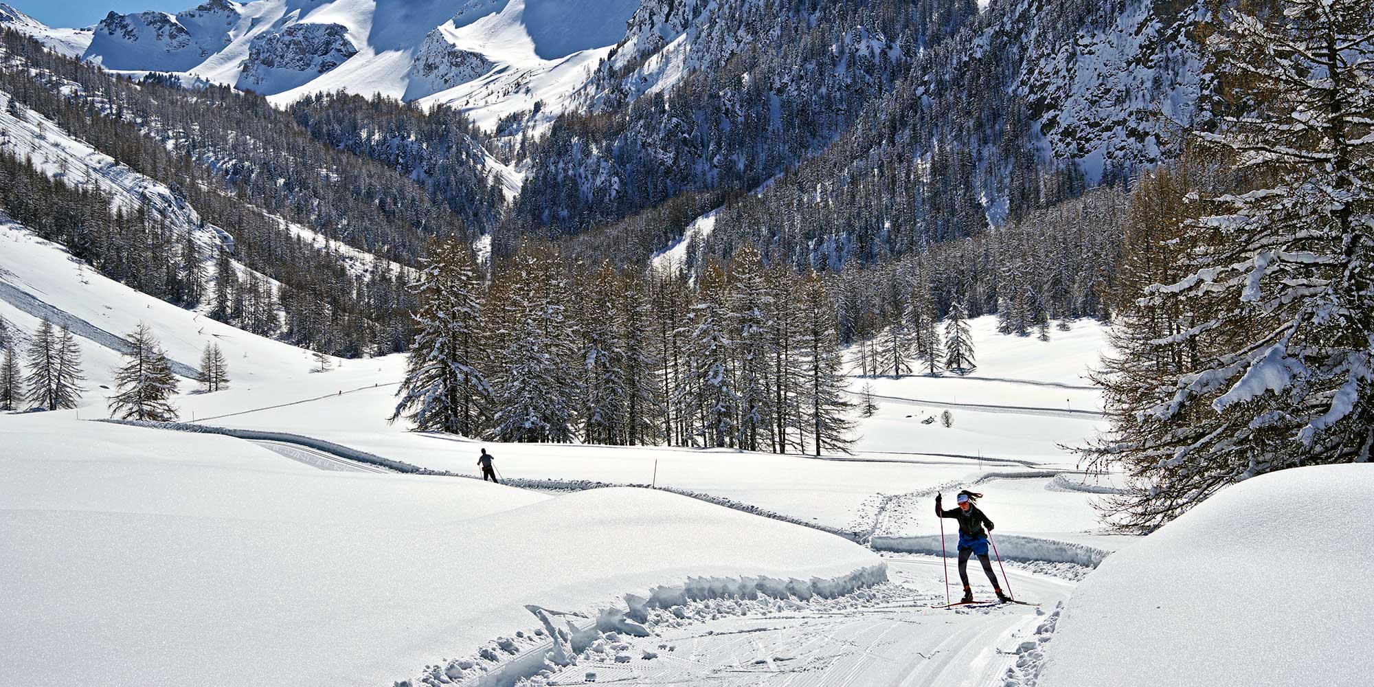 Narrow with a free heel, cross-country skiing seems to offer the perfect cocktail for breaking a bone. That’s true, and that’s why, as a great beginner, you’ll prefer to stay in the tracks for a while, or to take lessons. In this type of skiing, known as “classic” or “alternative”, you’ll be moving and walking. Of course, this original technique becomes very sporty when, instead of scales, you put on non-return wax and try to go fast! Soon you’ll feel comfortable enough to skate like a duck all the time, even uphill. Less waxing, less friction, everything will go much faster and skating will be a revelation. In the Queyras, the ex-tra-ordi-nary night work of the groomers means you can practice both techniques everywhere… With over 150 km of pistes, you’ll have plenty to do. What’s more, international competitors have understood this and come early in the season to prepare in high elevation.