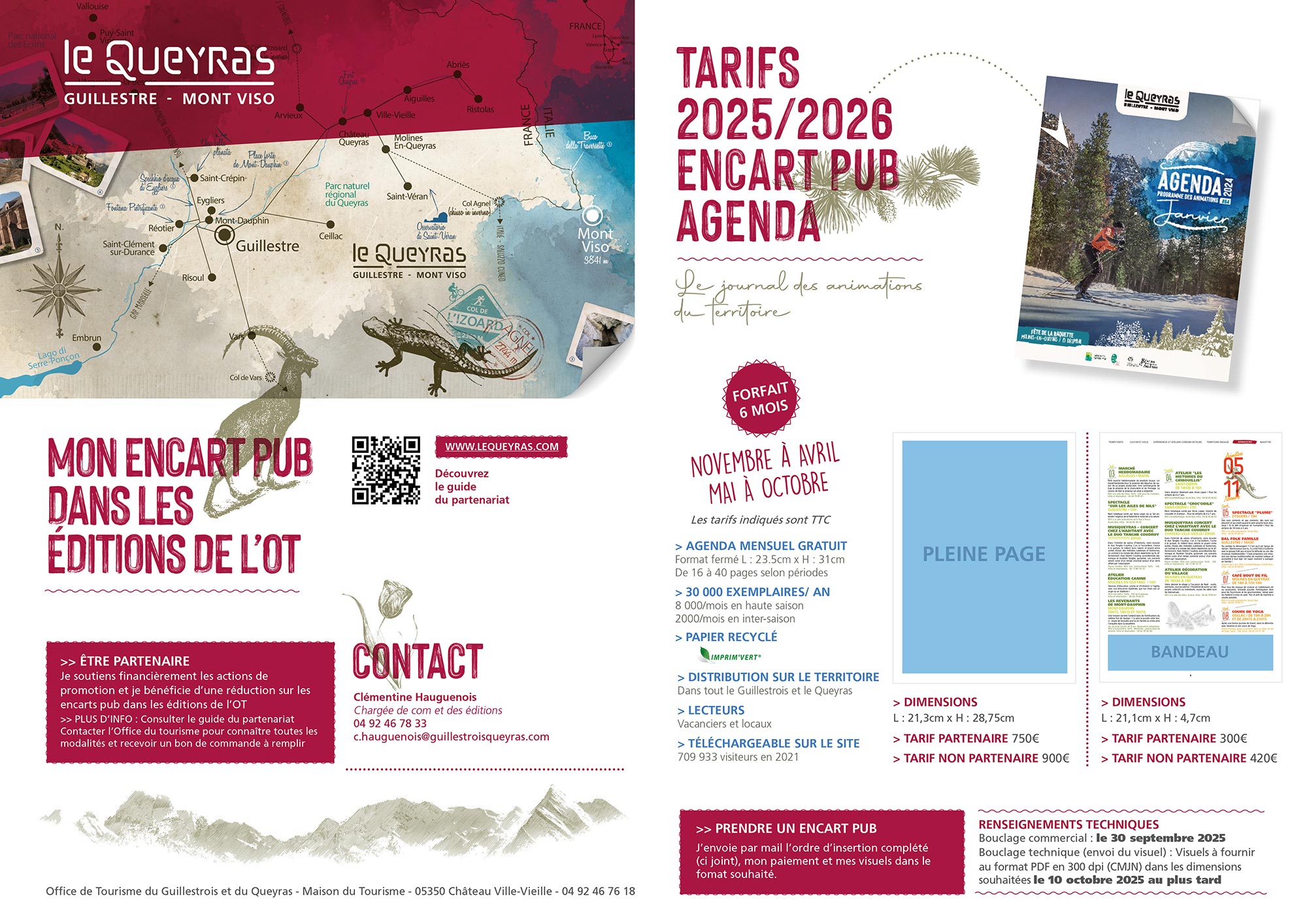 A noter : pour une parution dans l’Agenda de novembre à avril, le bouclage commercial et technique est fixé au 30 septembre 2025. Si vous avez besoin d’un délai supplémentaire, la période de votre parution sera décalée d’un mois.