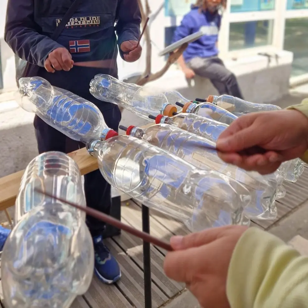 À partir de matériaux récoltés ou recyclés, l’imagination s’éveille : les sons naissent, les textures vibrent en créent une douce harmonie.