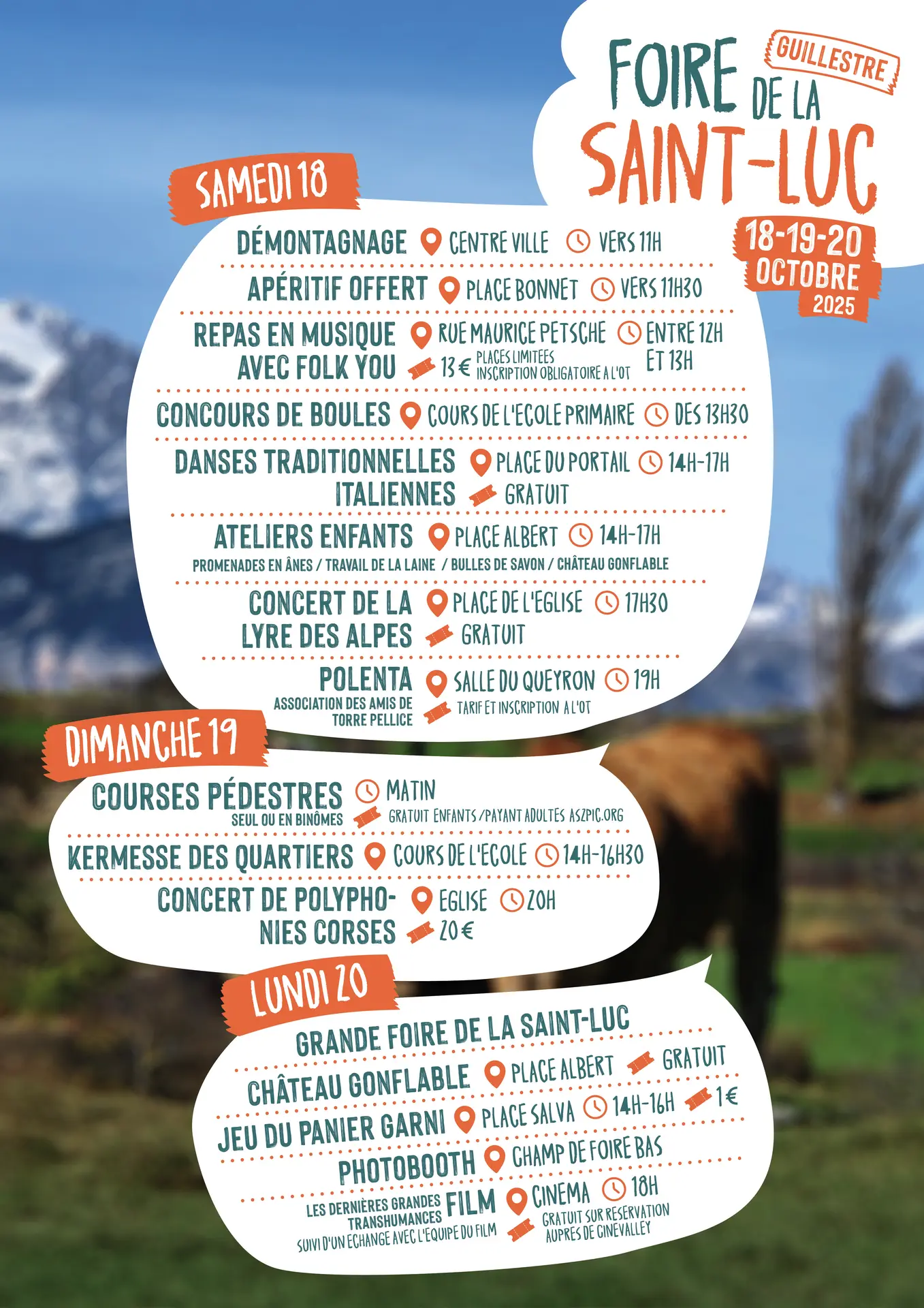 Foire ancestrale de l'agriculture haut-alpine, elle allie marché agricole, forains, présentation d’ovins et bovins avec des animations, pour le plus grand plaisir de tous !