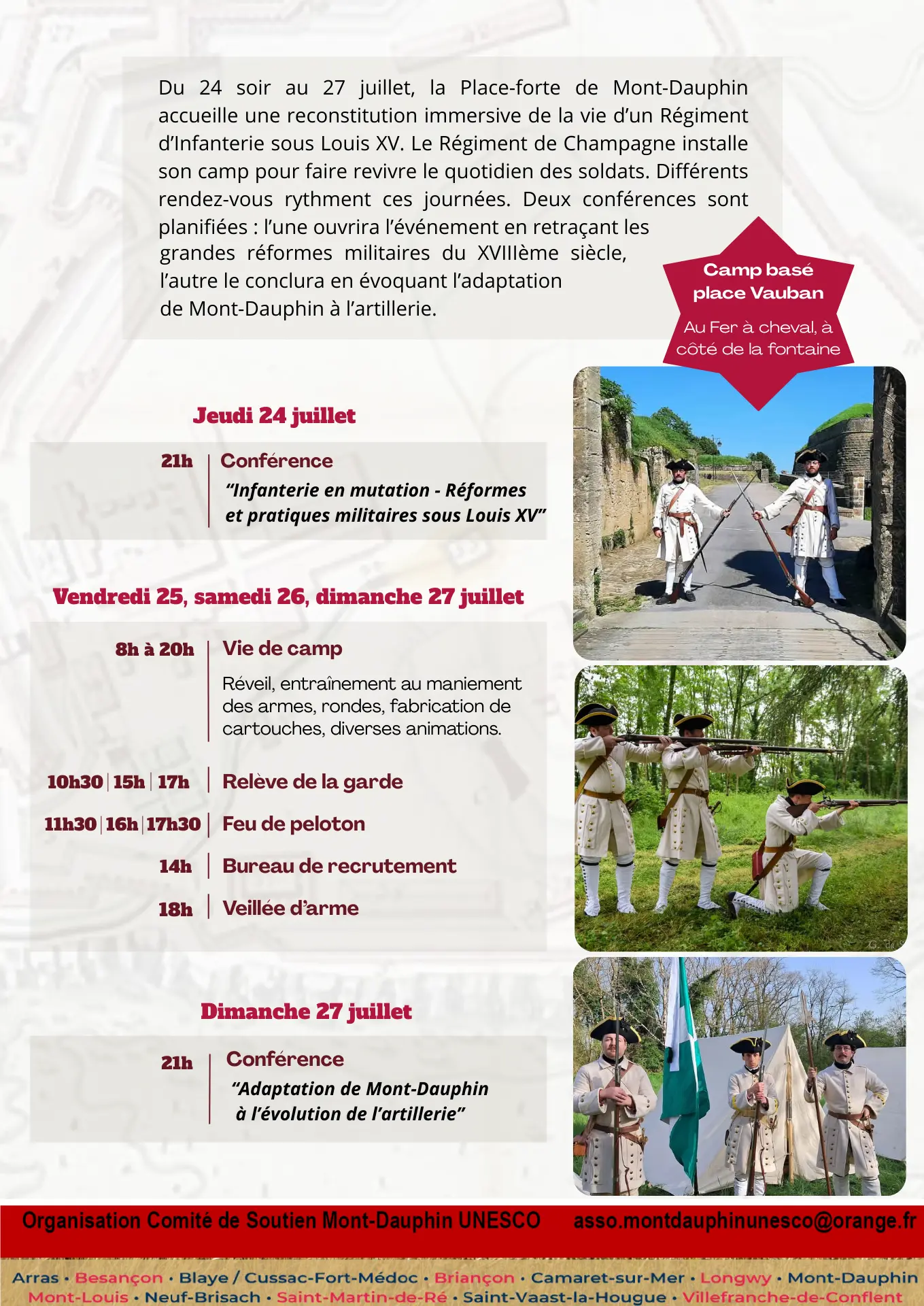 La place forte accueille Le Régiment de Champagne pour te faire revivre le quotidien des soldats avec une conférence sur "l'adaptation de Mont-Dauphin à l'évolution de l'artillerie".