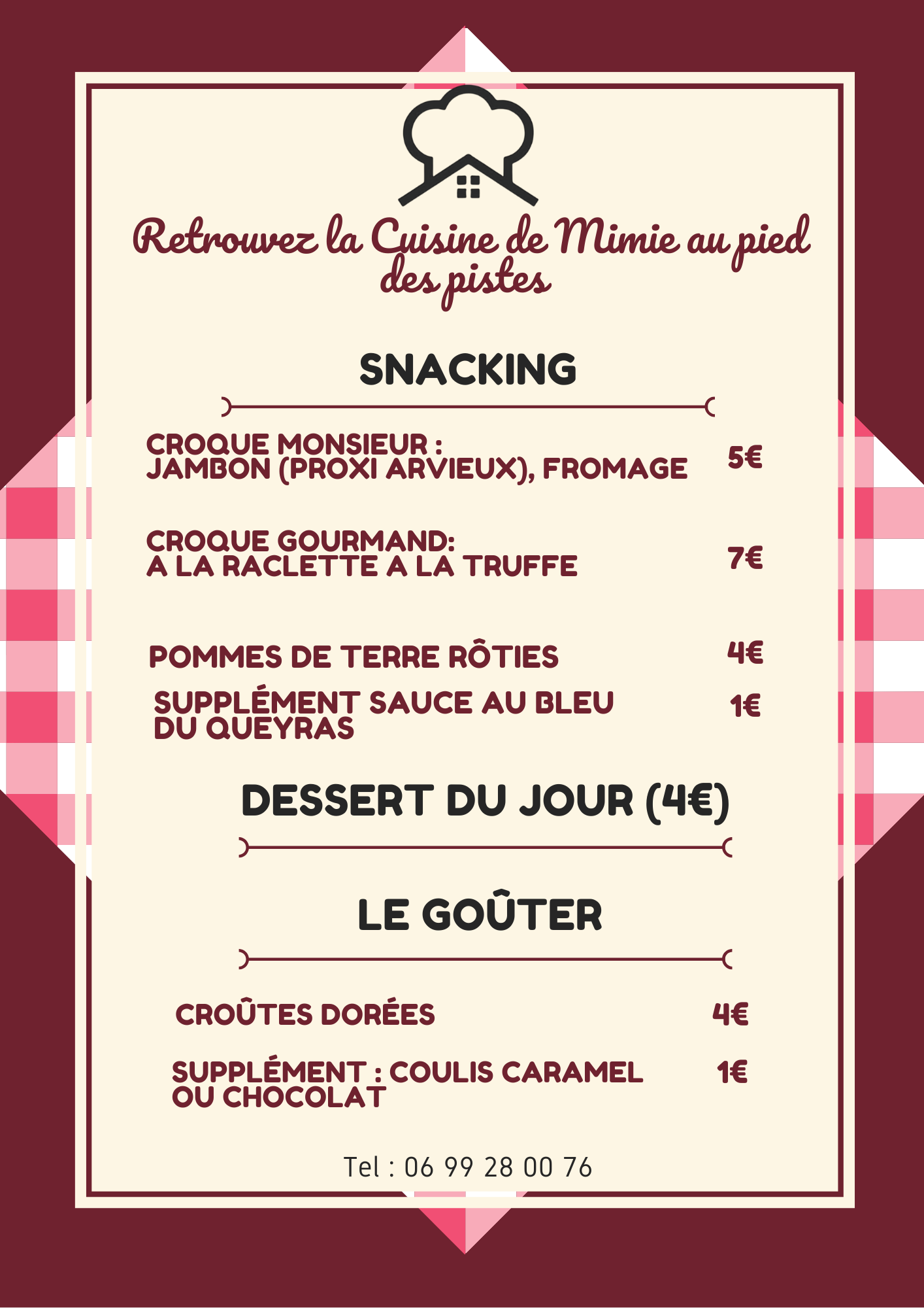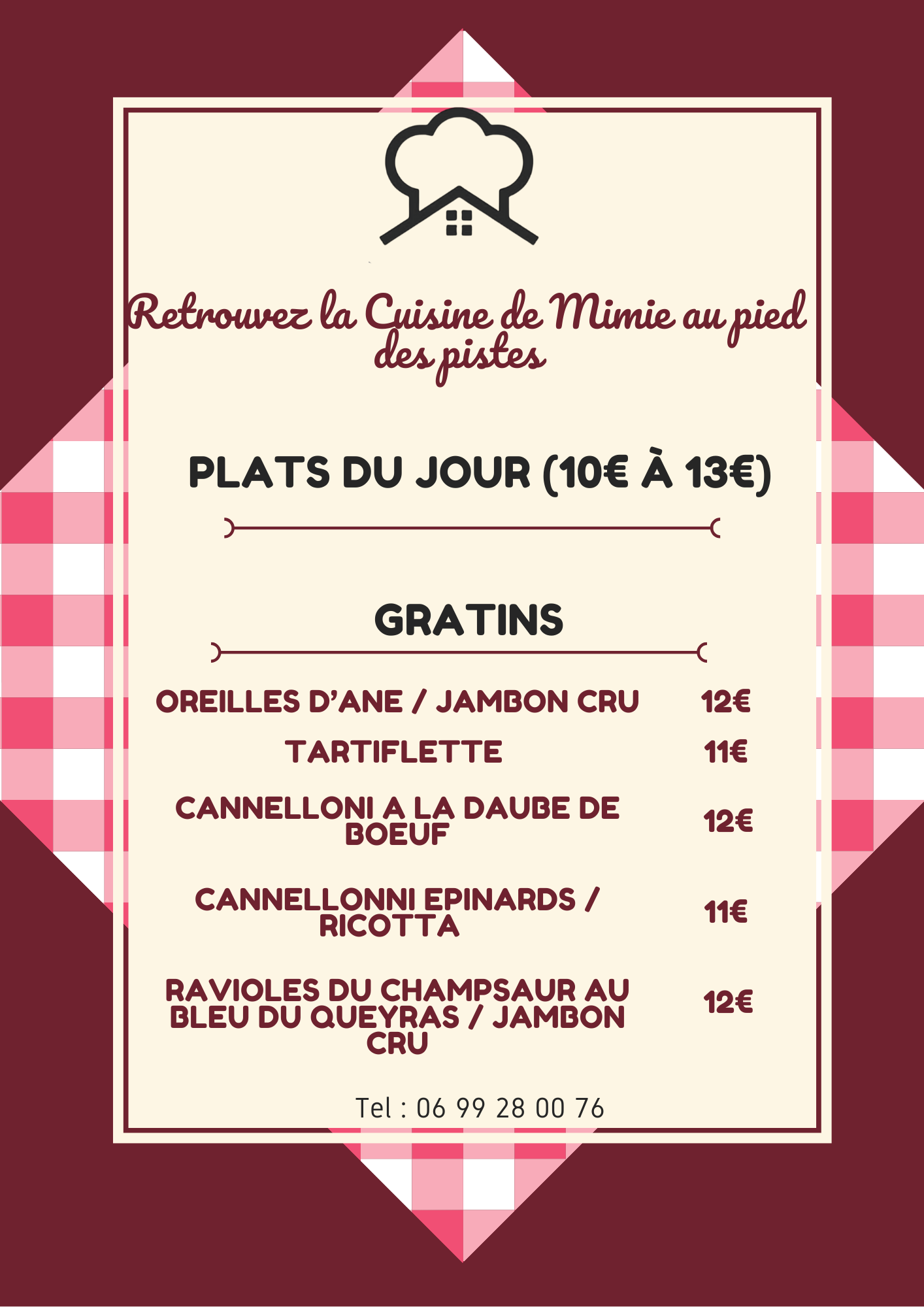 Plats du jour, gratin, desserts, goûter, croque-monsieur … Tu pourras les déguster tout l'hiver au pied des pistes d'Arvieux !