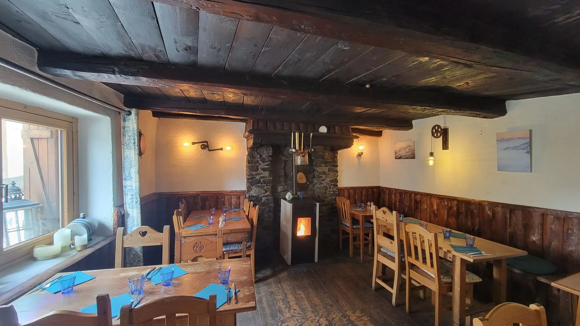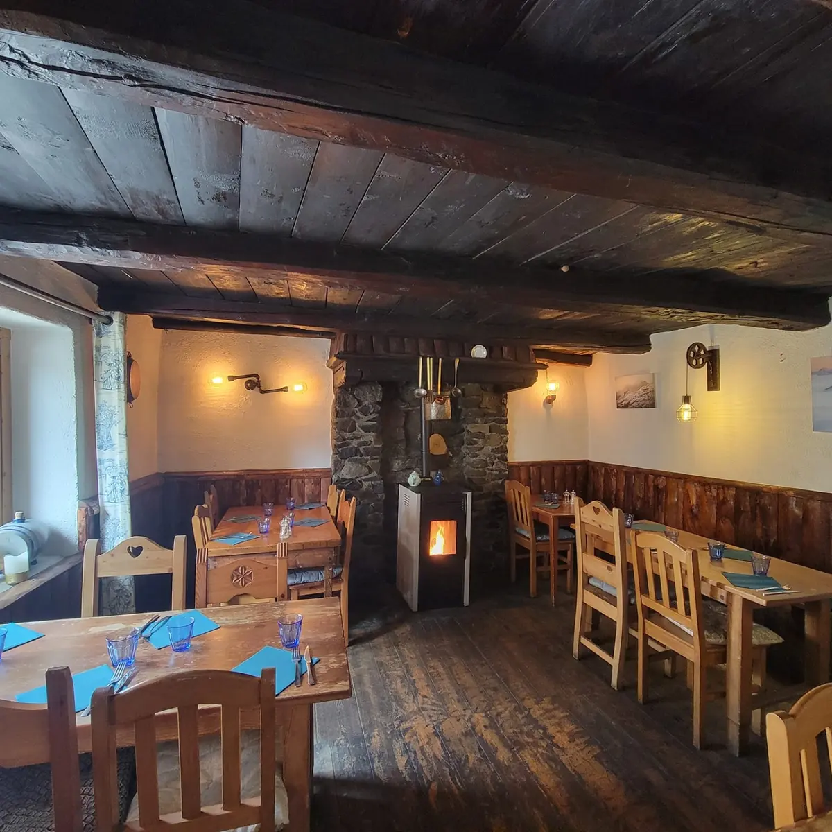 Tu pourras profiter de notre belle terrasse face à la montagne ou de l’une de nos deux salles chaleureuses.