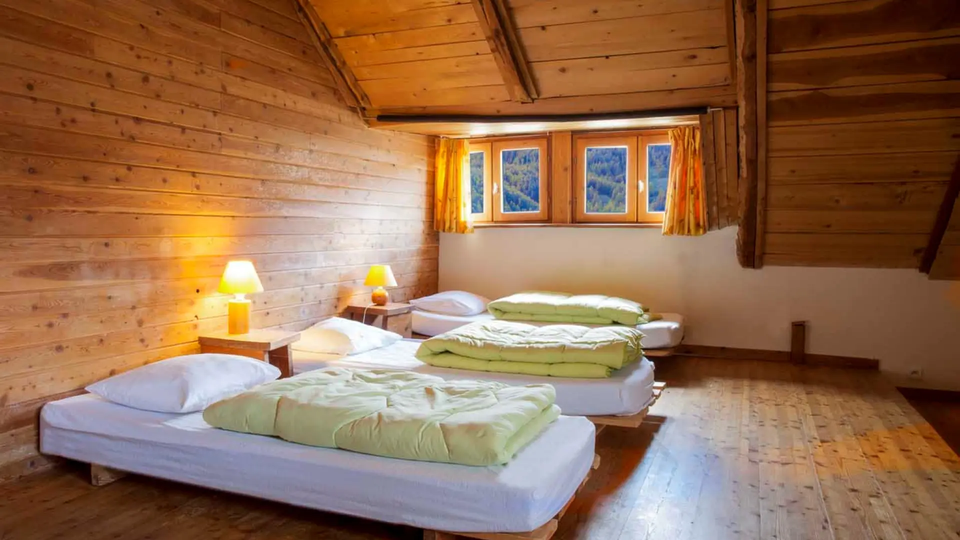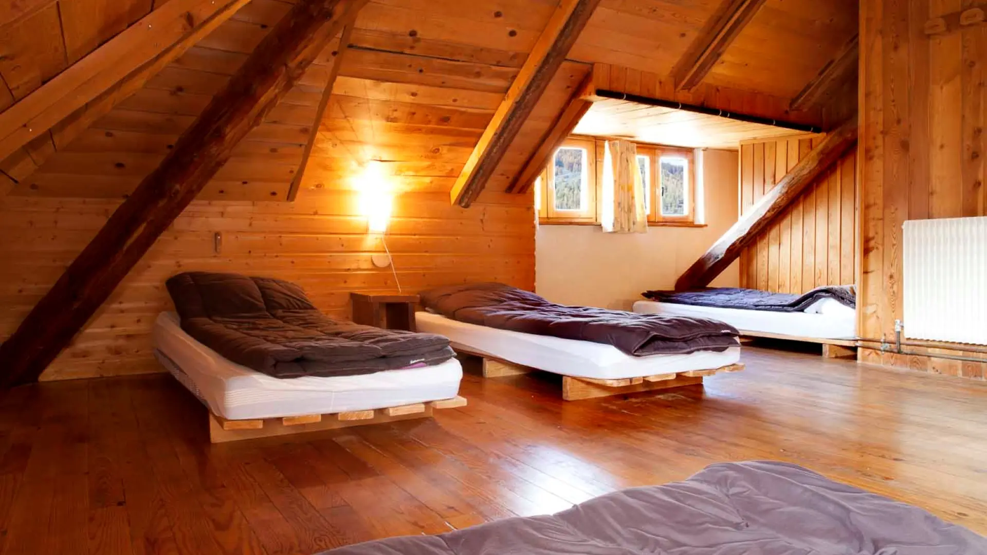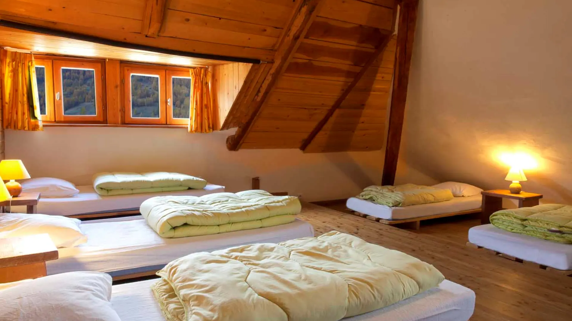 Lits simples en dortoir de 3 à 6 lits pour le gite d'étape.