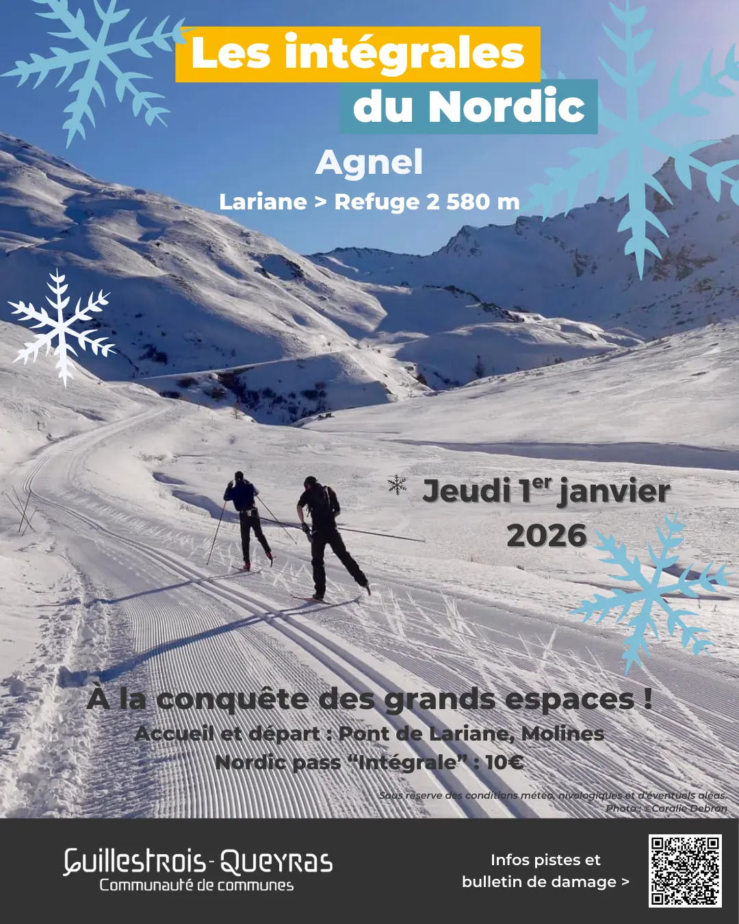 Les intégrales de l'espace nordique du Queyras - La Blanche et les LoupsFan de ski de fond et d'itinéraires sauvages, Cette session est pour toi ! A ne pas rater ! La date de damage peut être modifiée en fonction des conditions nivologiques,...