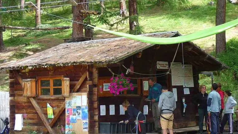 Dans les mélèzes tu trouveras un parcours en hauteur d'arbre en arbre. Des