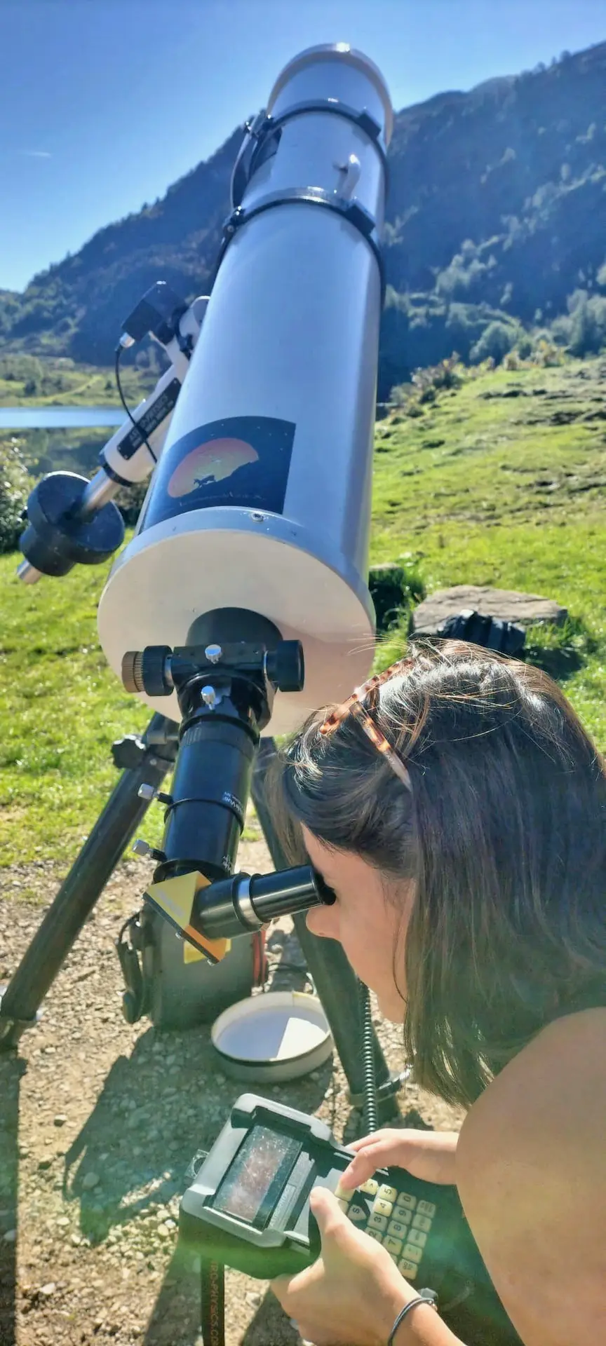 L’observation visuelle se fera également à travers des prises d’images en direct. Tu pourras ainsi explorer la chromosphère et les protubérances en lumière H-alpha (rouge), ainsi que les groupes de taches solaires en lumière blanche. Cette dernière apparaîtra en réalité verte grâce à l’utilisation combinée d’un hélioscope et d’un filtre continuum vert.