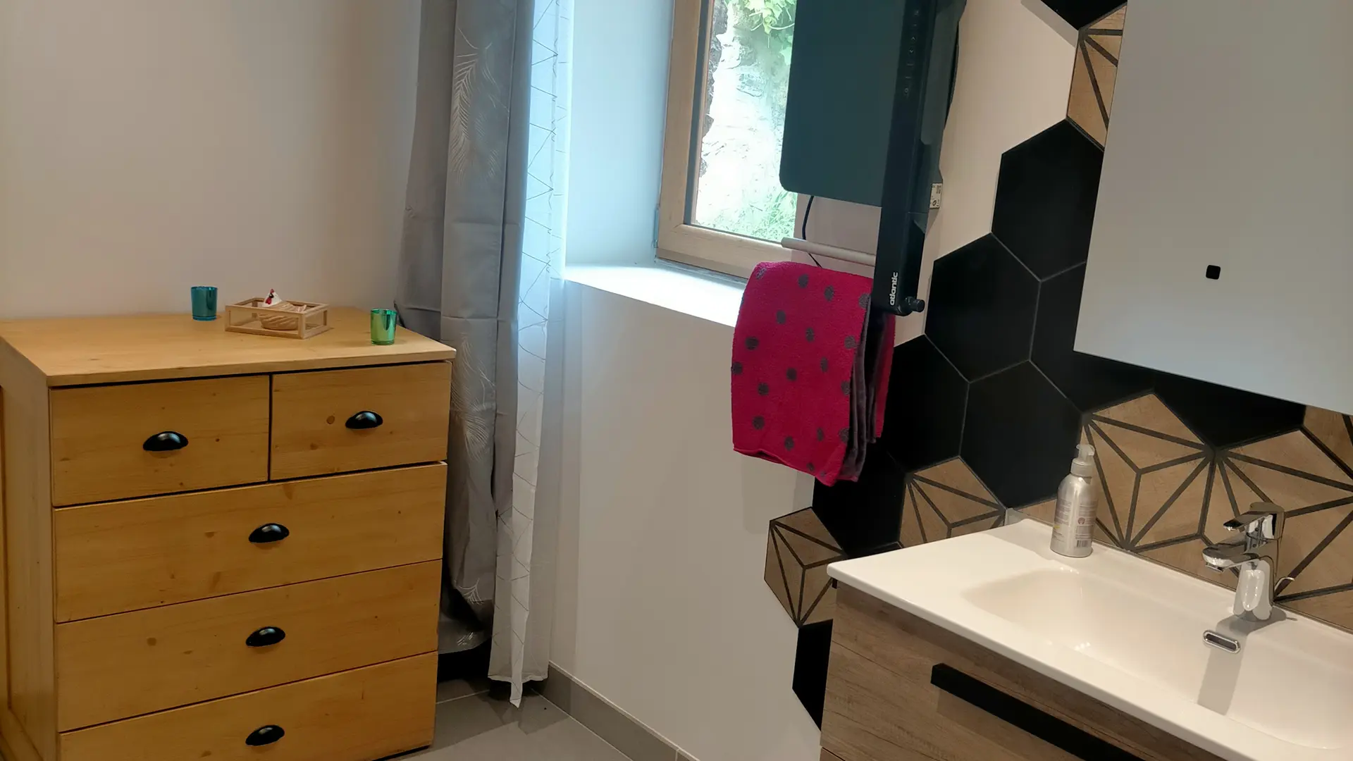L'Ecrin affiche un style résolument unique et moderne avec sa verrière qui sépare le coin couchage. Sa salle de bain ouverte lui procure un style inégalable. Sa cuisine tout équipée sera vous séduire. À proximité immédiate, les chemins du hameau se prêtent aux balades à pied ou à vélo avec de jolis points de vue sur les environs. Et à environ 6 km, les sources pétrifiantes de Réotier dévoilent un site naturel surprenant, parfait pour une sortie mêlant découverte, fraîcheur et panorama.