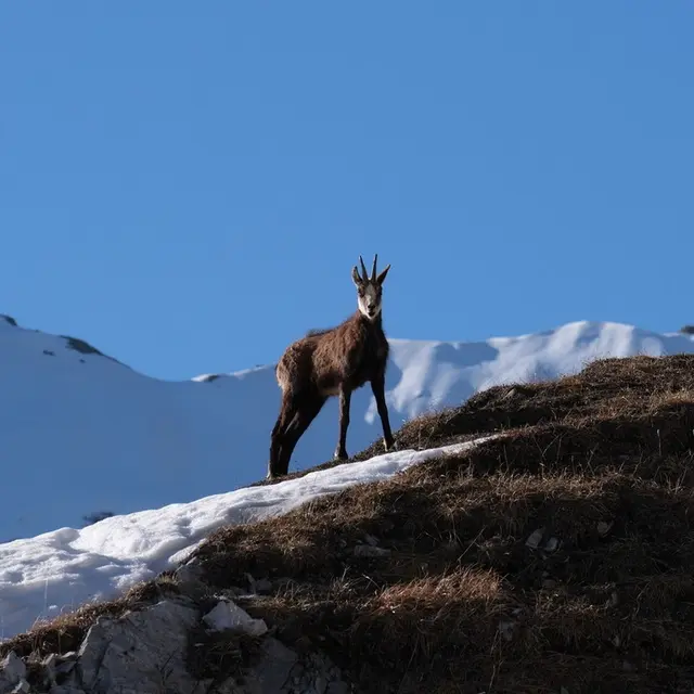 Alors bienvenue dans notre jardin secret, entre forêt de mélèzes et alpages ! Nous ne sommes pas les seuls à apprécier ce secteur et, armés de nos jumelles, nous aurons peut-être la chance d’apercevoir les chamois qui cherchent leur nourriture dans des pentes raides, plus haut, sur les crêtes.