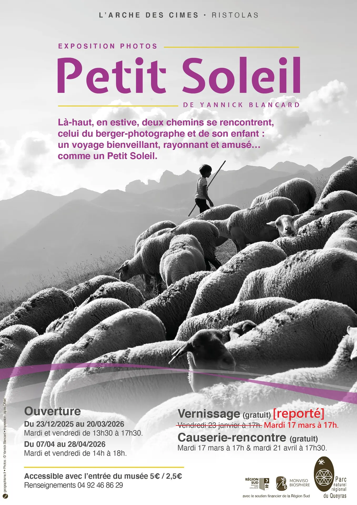 Tu découvriras à travers cette exposition du photographe Yannick Blanchard un monde de rencontre entre un berger et son enfant.
