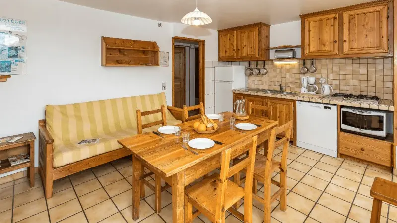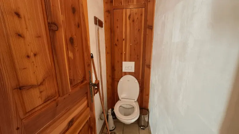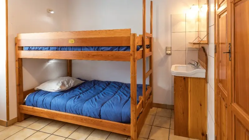 Au première étage avec un balcon exposé Sud. Dispose de trois chambres dont une avec lit double, une avec lits jumeaux et une avec 4 lits simples superposés. Seront à votre disposition également un séjour, salon, cuisine toute équipée. Ainsi qu'une salle d'eau et d'un Wc séparé. L'été un grand jardin avec un salon extérieur et un barbecue sont accessibles aux occupants du bâtiment.