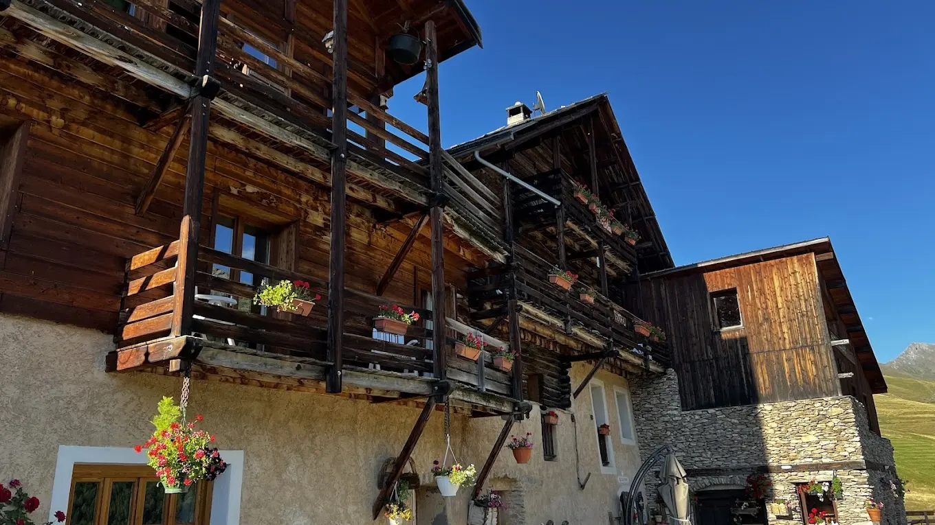 Depuis notre terrasse panoramique nous te servirons le petit déjeuner ou déjeuner en extérieur avec vue sur les marmottes et la montagne.