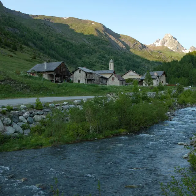 D’Abriès au haut du télésiège de Gilly, cette liaison de 12 km alterne terre et goudron, avec 500 m de dénivelé et un passage marqué par le hameau de Valpréveyre, petit bijou d'architecture montagnarde lové à l'entrée du cirque du Bric Bouchet.